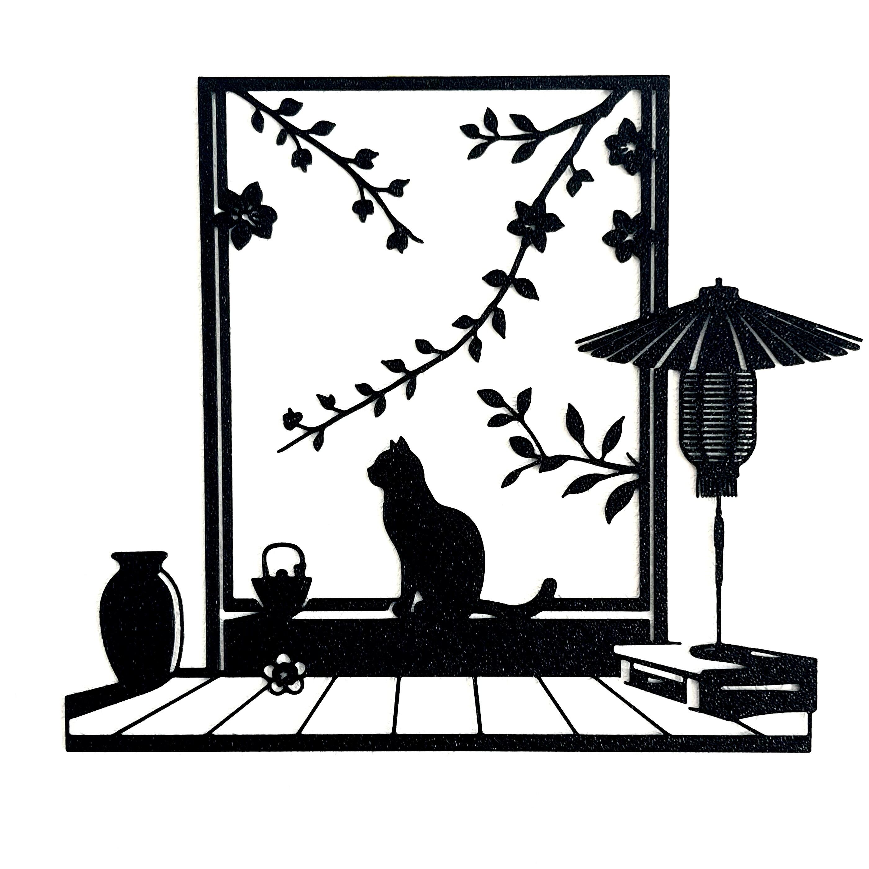 【3Dプリント製 動物モチーフ ウォールアート インテリア雑貨 猫 ネコ 花 和風】