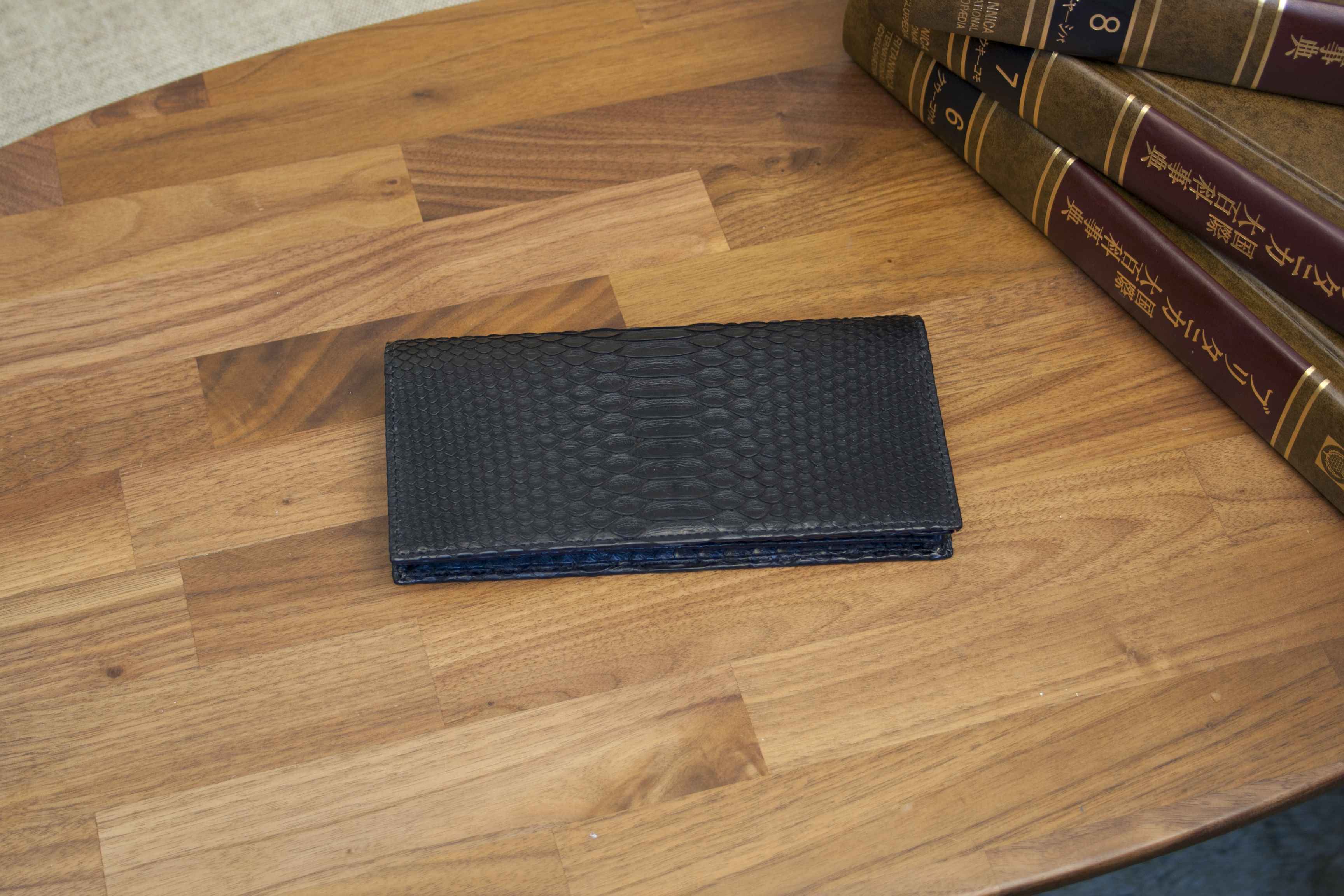 ダイヤモンドパイソンの革を今回は黒色に染めて重厚な雰囲気を出しました。
